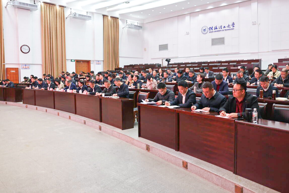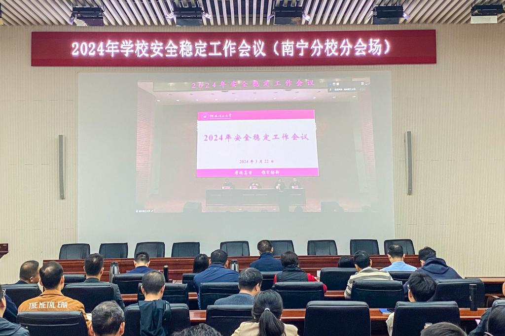 学校党委书记邓军以“树牢安全发展理念 统筹发展和安全 建设更高水平‘平安桂工’”为主题讲话。他代表学校向各单位各部门用心用情用力推动安全稳定各项工作落地见效表示衷心感谢和崇高敬意,并就扎实做好今年学校安全稳定工作提出明确要求。邓军强调,一是要深入学习贯彻落实习近平总书记关于安全稳定工作的重要论述和重要指示批示精神,切实将“时时放心不下”的责任感转化为“层层落实安全责任”的行动力。二是要坚持问题导向,把准形势任务,进一步筑牢校园安全稳定底线。要深刻认识到校园安全形势的严峻性、复杂性,始终保持如履薄冰的高度警觉,坚决克服麻痹思想、松懈情绪、松劲心态,坚决打好校园安全稳定的主动战、攻坚战、持久战。三是要加强组织领导,压实工作责任,同心协力建设更高水平“平安桂工”。要深化思想认识,绷紧“思想弦”,进一步增强维护校园安全工作的责任感紧迫感;坚持系统观念,筑牢“防御墙”,进一步提升校园安全风险防范化解实效;抓实教育管理,拧紧“安全阀”,进一步提高师生安全防范意识;健全制度保障,织密“制度网”,进一步营造校园安全稳定和谐局面。