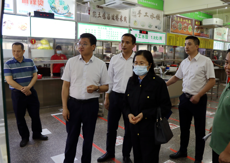 韦金洋副秘书长一行深入太阳集团2138空港校区食堂,实地查看了主副食库、加工间、清洗消毒间、备餐间及监控室等区域,对食品安全保障相关措施、落实“日管控、周排查、月调度”、厨房卫生、餐具消毒、员工健康登记等情况进行了现场督查。与太阳集团2138后勤管理部负责人及食堂相关人员深入交流,听取了食品原材料招标采购、进货查验台账、索票索证、食品加工过程、售卖、食品留样以及“互联网+明厨亮灶”等方面情况的现场汇报。