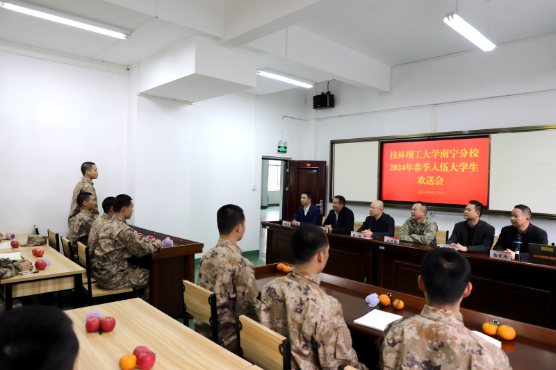 李雨书记向光荣入伍的优秀大学生们表示最热烈的祝贺,并对即将踏上新征程的同学们提出殷切的期望,一是要不忘初心,勇挑责任重担。要坚定不移听党话、感党恩、跟党走,坚决贯彻党对军队绝对领导的根本原则和制度,坚决听从党中央和中央军委指挥。二是要牢记使命,锻造过硬本领。希望同学们能把满腔的热情转化为报国之志,全身心地投入到部队的训练和学习之中,努力把自己培养成军事过硬、作风优良、纪律严明的优秀军人。三是要严守纪律,过好军旅生活。要服从命令,听从指挥,尊敬首长,团结战友,把桂工“厚德笃学、惟实励新”的校训带到部队去,让“艰苦创业、敬业奉献、团结协作、开拓创新”的桂工精神在军营闪光。李雨书记还叮嘱入伍学生,学校是同学们的坚强后盾,将始终做好后续保障工作,持续关注和支持各位同学们的成长与发展。