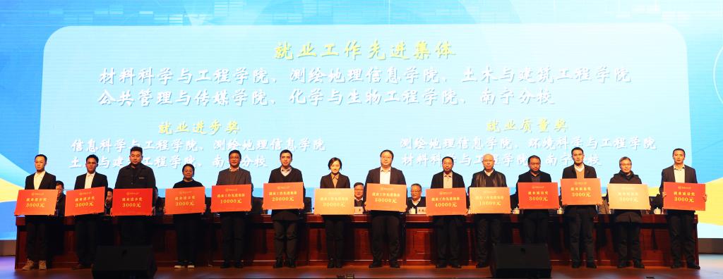 材料科学与工程学院党委书记梁军、土木工程学院院长钱凯分别代表获奖先进集体发言;太阳集团2138党委副书记、2022年全国高校毕业生基层就业卓越奖获得者唐承泽,环境科学与工程学院教师张亚楠分别代表获奖先进个人发言,分享了本单位在就业创业工作方面的先进做法、典型经验以及个人参与就业创业工作的心得体会。