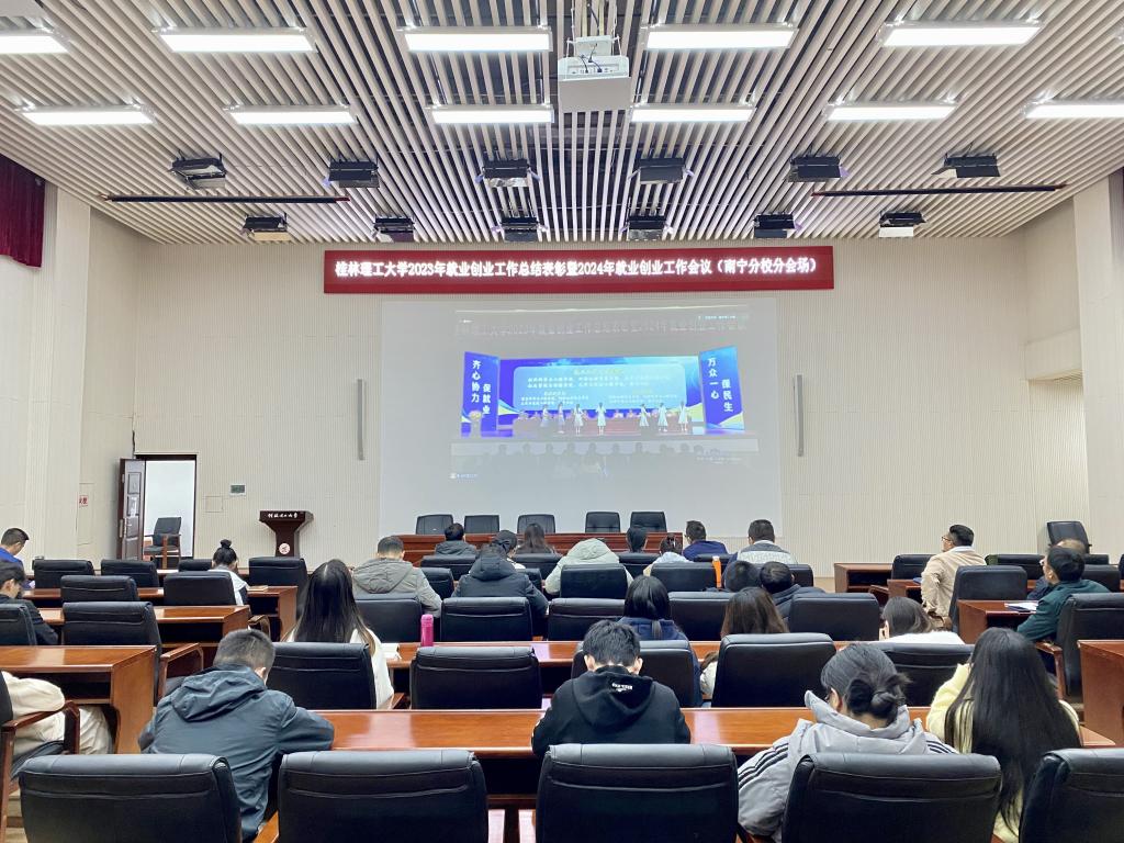 学校党委副书记吴志强以“凝心聚力 勇毅前行,全力促进2024届毕业生顺利就业”为题,作2023届毕业生就业工作总结,并就2024年毕业生就业工作进行部署。他指出,学校坚持把毕业生就业工作作为最大的民生工程抓紧抓实抓细,在各学院及相关部门的共同努力下,2023届毕业生就业工作成效显著,连续23年获评全区就业工作突出单位,毕业生去向落实率持续保持在90%以上,以广西高校排名第一被推荐参评2022-2023年度全国高校毕业生就业创业工作示范单位。吴志强强调,要以高度的政治责任感和强烈的事业心,坚定落实就业优先政策,紧紧围绕“一个目标,三个阶段,四个确保”的工作思路,切实加强组织,狠抓工作落实,确保圆满完成2024届毕业生就业工作目标任务。
