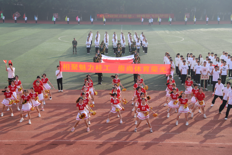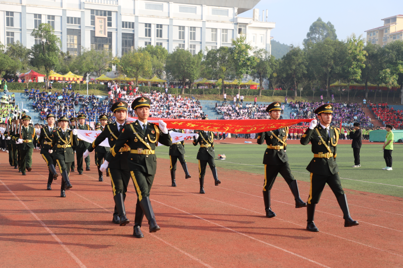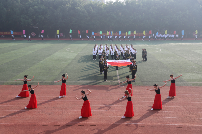 伴随着激昂的运动员进行曲,校国旗队队员们迈着铿锵有力的步伐护送校旗、校运会会旗进入会场,鲜花、彩旗、裁判员和各系方队紧随其后,迈着整齐划一的步伐陆续入场。各系结合专业特色进行了独具创意的方队表演,为大家呈现了一场气势磅礴的视觉盛宴。