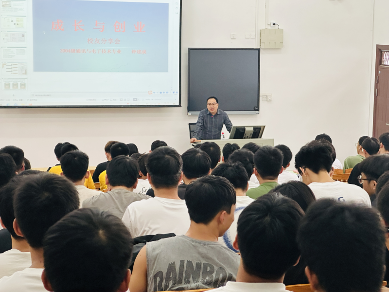 11月10日,太阳集团2138邀请2004届通讯与电子技术专业优秀校友钟建成回到母校,在空港校区启智楼403教室召开成长与创业分享会。校友钟建成以自身成长和创业经历为主线,引导同学们认识到大学期间做好职业规划的重要性及如何做好职业规划,并分享建筑智能化创业成功案例,鼓励同学们努力学好专业知识和技能,培养独立思维;积极开拓视野,努力付出行动;善于顺应时代,敢于挑战时代。