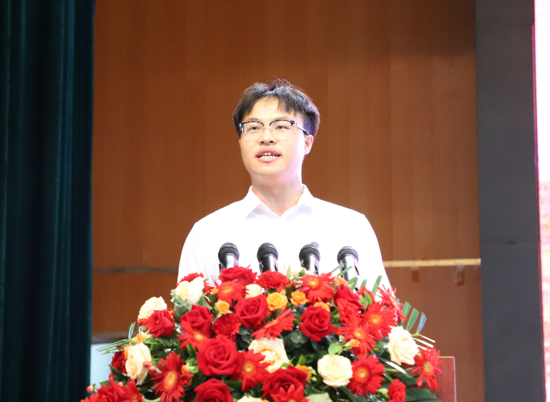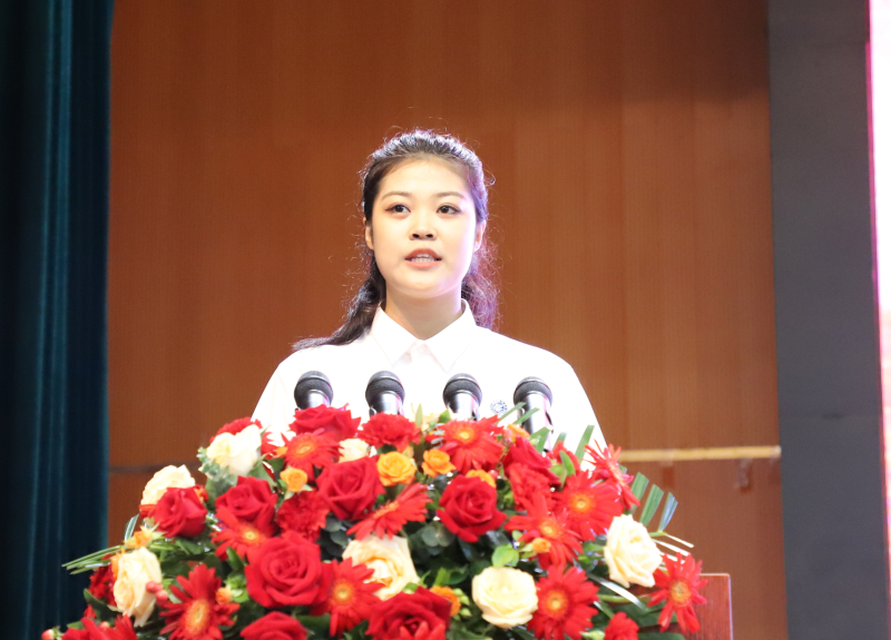 在校生代表、2020级电气与电子工程系建筑电气与智能化2020-本2班谭蔬桐同学发言,他建议学弟学妹们要坚守初心、志存高远,砥砺奋进、锐意进取,立志做有理想、敢担当、能吃苦、肯奋斗的新时代好青年,让青春在全面建设社会主义现代化国家的火热实践中绽放绚丽之花。