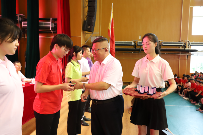 学校党委书记邓军为新生代表佩戴校徽,标志着每位新生将以“桂工人”的身份开启崭新的大学生活。邓军在讲话中代表学校向2023级新同学的到来表示热烈欢迎,并提出四点希望:一是要坚持以国为大,厚植家国情怀。传承红色基因,树立远大理想,找准正确航向,自觉与伟大时代“双向奔赴”,将人生志向和国家发展紧密结合在一起,在大学期间努力学习奋发成才,争做理想远大、信念坚定、爱党爱国、本领高强的青年模范,努力成为可堪大用、能担重任的栋梁之材。二是要坚持以德为先,修养高尚情操。把正确的道德认知、自觉的道德养成、积极的道德实践紧密结合起来,学会助人、谦让、宽容、感恩,做一个诚实的学生、守法的公民、守信的朋友,成为有高度、有深度、有温度、有品德的时代新人。三是要坚持以学为重,练就过硬本领。不虚度时光,认认真真学习、扎扎实实训练,努力夯实学业基础、完善知识结构,提升思维能力,练就过硬本领,在极为宝贵的大学时期奠定一生的立命之本、奋斗之基,用刻苦学习“守得云开见月明”,收获属于自己美好未来的“星辰大海”。四是要坚持以爱为基,砥砺奉献品格。培养大爱,学会爱,爱党爱国,爱人民,爱家乡,爱学校,爱自己,爱亲人,爱朋友。自觉践行爱国主义精神,心怀大爱,以无私奉献为荣,以成就他人为乐,努力成为照亮他人前行的那道光。
