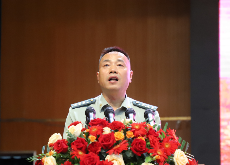 扶绥县武装部政委岳建军上校在讲话中剖析了高等学校开展军事训练的重要意义,要求坚持高站位,学习和理解军训工作,科学筹划、周密组织、安全规范施训,有序开展军训工作。他要求,全体2023级新同学们居安思危,树立强烈的国防意识,积极关心和参与国防建设,认真开展军事训练,切实提高军事技能,严明纪律,培养良好行为习惯,提升爱国主义情怀与国家安全大局观。