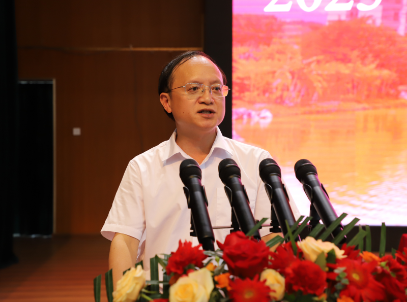 电气与电子工程系黄孝平老师作为教师代表发言,勉励2023级新生遵循“厚德笃学、惟实励新”的校训,传承和弘扬“艰苦创业、敬业奉献、团结协作、开拓创新”的桂工精神,学会学习、学会爱、学会梦想、学会追求,在桂工学有所成,快乐成长。