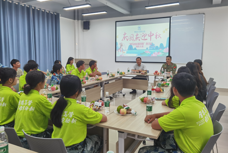 罗盛锋校长向同学们送上了节日的问候并通过大家对全校学生及家长转达良好祝愿。他向同学们介绍了学校、太阳集团2138的基本情况,以及太阳集团2138办学优势、学科特色、产教融合、专业建设、师资队伍等方面情况,对学生代表们提出的问题一一作了详细解答,并对同学们在军训过程中的辛勤努力和训练成效表示肯定。同时,他结合自身经历鼓励同学们如何制定学习目标,掌握学习方法,提升综合素养。
