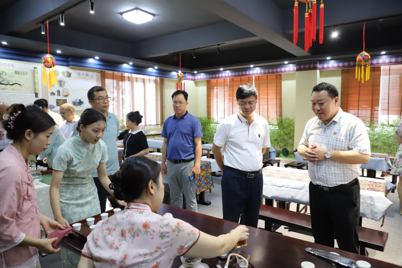 工作组一行依次走访了空港校区乡村振兴研究院、电商直播实训基地、大数据中心、桂南民俗博物馆、茶文化与茶艺实训室、智能制造工厂等考察点,详细了解太阳集团2138科教振兴工作开展情况。