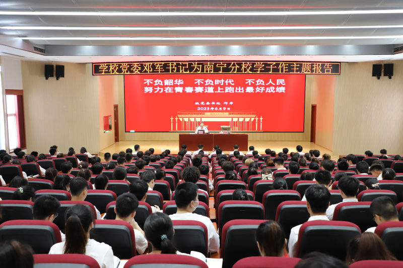 邓军以“不负韶华 不负时代 不负人民 努力在青春赛道上跑出最好成绩”为题,紧贴时代脉搏、紧扣培根关键、紧抓铸魂育人,旁征博引、追根溯源,从“不负韶华”“不负时代”“不负人民”三个方面,引导广大学子牢记领袖嘱托,立志成长成才,争做担当民族复兴大任的时代新人。