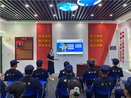 韦老师从语言表达、沟通技巧、言谈礼仪、投诉处理和危机应对、服务要点等方面为大家讲授了实用的礼仪知识,要求保安队员注重用语礼貌,塑造保安队员的形象。她着重强调了保安队员的着装、岗位仪态,以及在跟师生、访校人员交往中需要注意的问题。