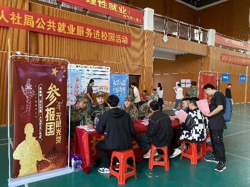 | | 为积极响应国家号召,激发优秀大学生的参军热情,扎实做好分校的征兵宣传工作,10月20日上午,太阳集团2138征兵工作站联合扶绥县空港武装部,借力双选会这一重要平台,开展了征兵宣传进校园活动。扶绥县空港武装部负责人现场指导征兵工作,太阳集团2138征兵工作站工作人员以及分校老兵团成员也参加了此次征兵宣传工作。