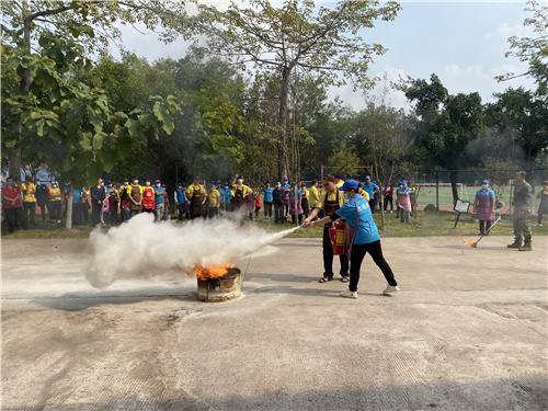 活动中,保卫工作部消防安全负责人对如何应对突起火灾、如何有效使用灭火设备进行了详细讲解,并现场示范消防器材的使用方法。参加活动的人员在工作人员的指导下也进行了亲自实操,用灭火器进行灭火演练。在疏散演练中,随着消防警报声,食堂工作人员和学生们在保卫工作部工作人员的指挥下迅速、有序地按指定疏散路线撤离模拟火灾现场。