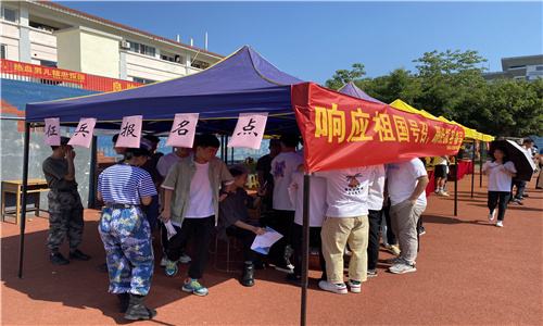 为了更好的完成2021年秋季征兵工作,5月14日趁着分校开展毕业生双选会之时扶绥县人民武装部在分校田径场开展征兵宣传活动。