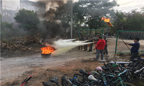 保卫工作部消防负责人首先为新生开展了消防知识讲座,主要讲解了发生火灾时如何报警、如何使用消防器材,初起火灾如何扑救及自我逃生等消防知识。通过现场讲解之后,还组织新生开展了灭火器现场灭火演练。