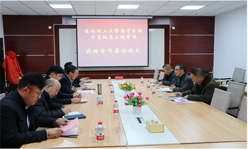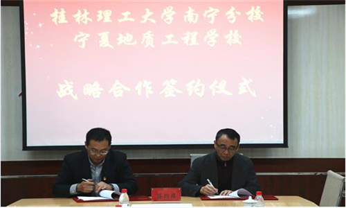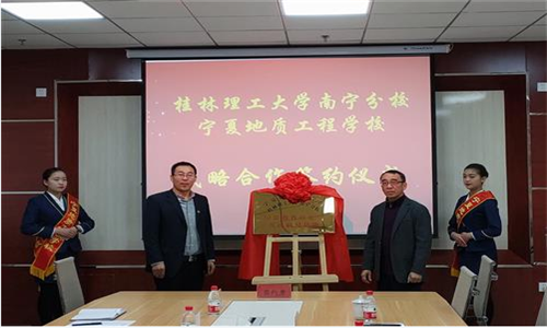 太阳集团2138梁冬松副书记(右二)与宁夏地质工程学校副书记李全福(左二)共同