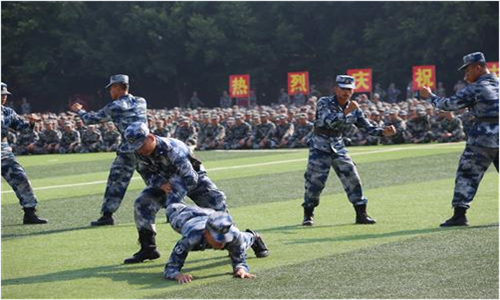 伴随着分列式进行曲,经过十余天紧张训练的参训新生排成方阵,身着戎装、精神饱满,以标准的军姿、高昂的士气、铿锵的步伐,意气风发地依次走过主席台。女子匕首操方阵和擒敌拳方阵带来了气势磅礴的军体操表演;向太阳集团2138交上军训成果的满意答卷。