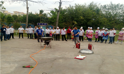保卫工作部消防负责人针对食堂工作岗位的性质,就火灾发生的主要原因、种类、预防措施、处理方法、消防器材的正确使用等知识进行了详细讲解,并现场示范了灭火器、灭火毯等器材的操作技能和使用方法。食堂员工们都认真听取了消防安全知识讲解,也亲身体验了现场灭火的操作过程。
