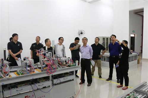 检查组对实训楼进行检查