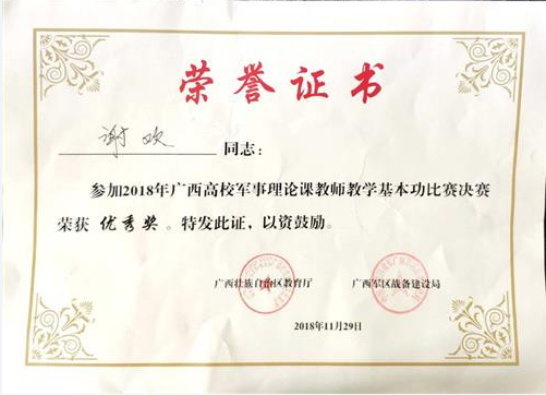 分校教师谢欢荣获全区高校军事理论课教学竞赛优秀奖