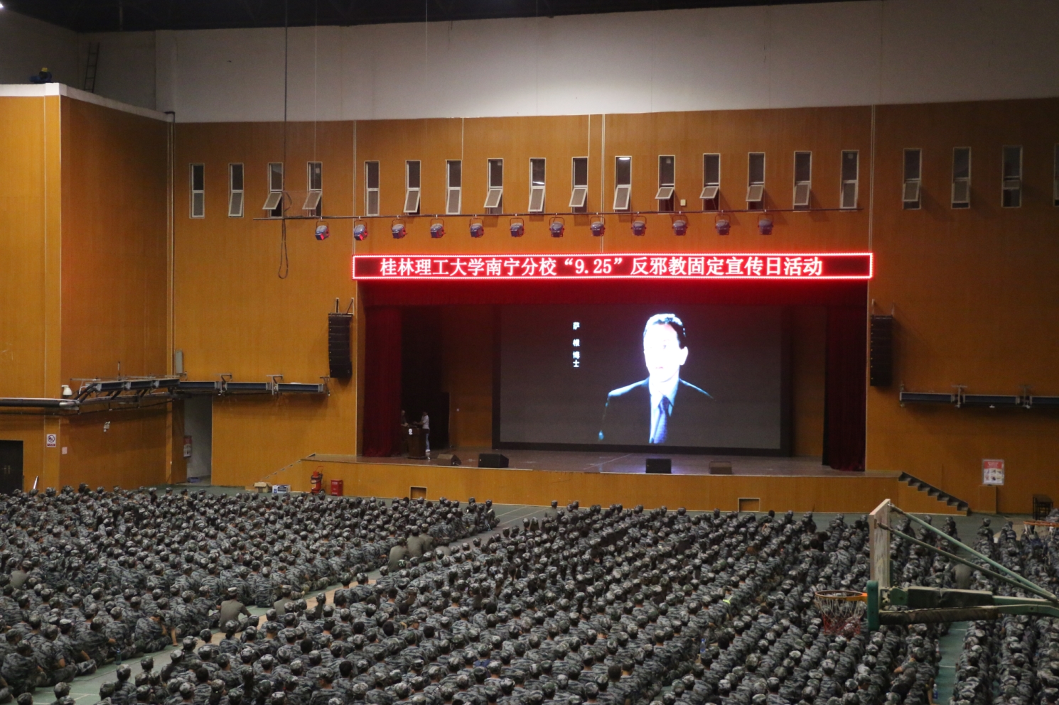 | | 9月19日晚,分校在空港校区体育馆举办了新生国防教育之国际及我国周边战略环境暨反邪教安全教育讲座。讲座邀请了崇左市政法委副书记、防范办主任伍启明作专题报告。分校副校长梁锦叶,统战部、保卫工作部负责人及全体2017级新生军训团教官、师生参加讲座。