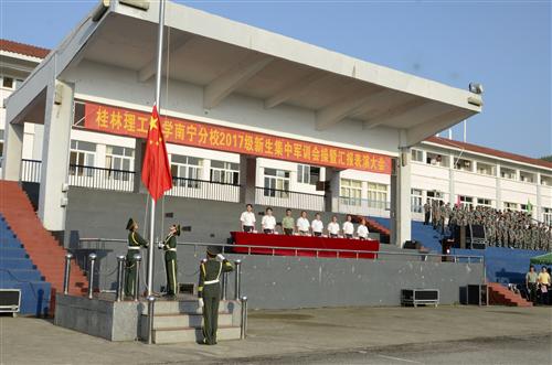 汇报表演结束后,王敦球副校长作了讲话,他代表学校向为军训工作付出辛勤汗水的教官和工作人员致以崇高的敬意和衷心的感谢!对参训的全体新同学表示亲切的慰问,对同学们在此次军训中取得的良好成绩表示热烈的祝贺!他希望,同学们要牢记这次军训生活,坚持把军队的优良品质和作风融入到今后的学习、生活和工作中,做到与时俱进,弘扬“艰苦创业、敬业奉献、团结协作、开拓创新”的桂工精神。做一个理想远大、热爱祖国的人,追求真理、勇于创新的人,德才兼备、全面发展的人,为推进学校的全面建设和发展,为祖国明天更辉煌而奋发图强。