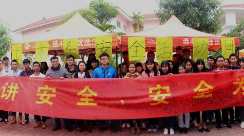 活动现场气氛热烈,工作人员热情地为前来参加活动的同普及安全知识,提醒广大同学注意宿舍用电安全、人身财产安全。广大师生积极响应,踊跃参与,纷纷在 “人人讲安全,安全为人人”的横幅前签名,用实际行动来支持本次活动的开展。