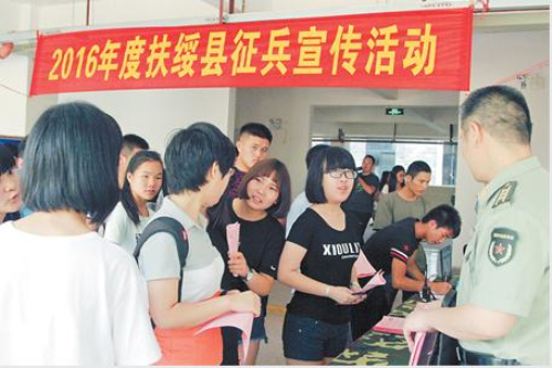 宣讲会后,同学们涌向分校征兵宣传处,咨询征兵工作相关情况。崇左市电视台对本次活动进行了全面的报道,并采访了分校老兵团的退伍大学生代表。此次宣讲会的顺利举办,也标志着分校2016年度大学生应征入伍工作全面启动。