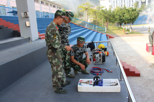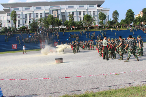 | | 根据桂教安稳【2015】14号文件关于,开展暑期消防消防安全宣传教育行动暨消防知识“进军训”的通知。军训期间我校邀请扶绥县人民武装部张加兵部长、扶绥县消防大队中队长蓝克遥警官分别为新生带来精彩的军事理论教育和消防安全知识。
