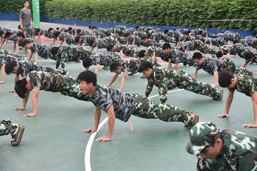 伏地挺身,锻炼的是身体,磨练的是意志。五个、十个、二十个……在教官充满激励的数数下,学子们坚持、坚持、再坚持!他们倔强地超越自己!