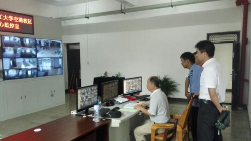 | | 假期即将来临,为确保校园安全工作落到实处,防范各类安全事故的发生,7月10日下午,我校领导梁锦叶带领保卫工作部,对学校图书馆、饭堂、监控室及实训楼等地进行安全大检查。