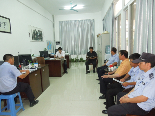 保卫工作部陈发杰主任做了讲话,盛夏来临,气温渐升我校侧门对面的宵夜街晚上每晚经常经营至凌晨两三点。保安队伍要特别注意宵夜街的动向,有效的防止吃客喝酒之后闯入我院内。门岗的队员要严格根据的门岗出入制度排查每一位晚归的学生,超多11点后禁止一切无关的外来人员进入校园。最后,陈主任传达肖岳峰副校长于5月22日上午召开的安全稳定会议的精神,并传达了上级部门对我部门的安全稳定工作提出的具体要求。