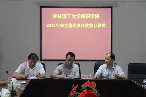 随后,学校党委常务副书记梁冬松、副校长梁锦叶代表学院与土木与测绘工程系、后勤管理部等单位、部门代表签订了安全稳定工作目标管理责任书和安全文明校园创建责任书。