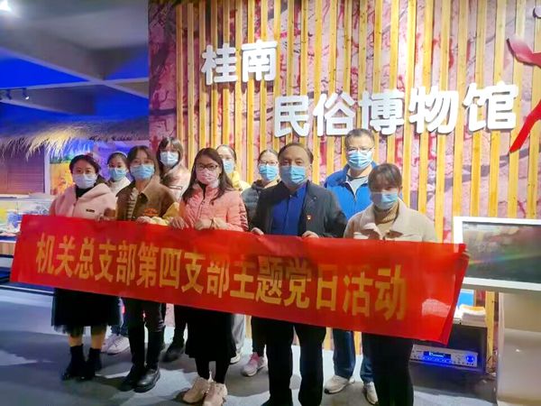为全面贯彻习近平新时代中国特色社会主义思想和中央民族工作会议精神,12月8日上午,机关第四支部在太阳集团2138503干部之家和桂南民俗博物馆开展以“深化民族团结进步教育 铸牢中华民族共同体意识”为主题的党日活动。活动由支部书记何荣主持,支部全体党员和发展对象参与此次活动。