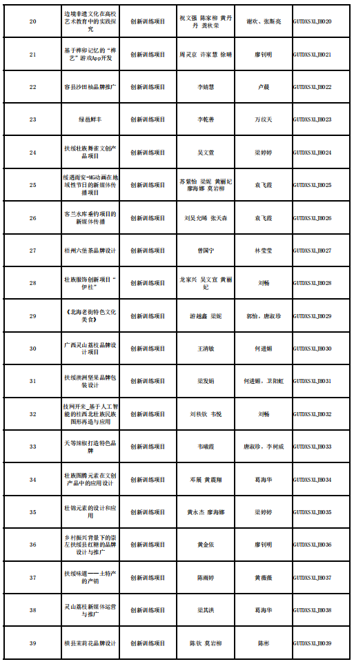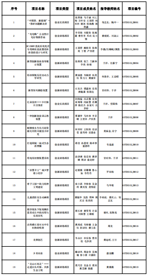 根据《太阳集团2138大学生创新创业训练计划项目管理办法》的工作要求, 经太阳集团2138各个院系评审推荐,确定太阳集团21382023年大创立项项目共44项,(其中2项评选为国家级项目,9项评选为自治区级项目,33项评选为校级项目),现将具体项目公示如下: