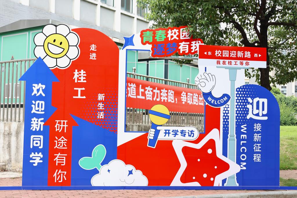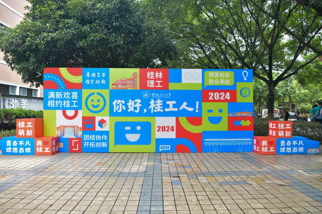 各学院紧密结合自身学科特色、学院文化等,纷纷设计了别出心裁、充满趣味性的迎新活动,准备入学礼包,用热情与真诚迎接新同学,精心为萌新们描绘着他们的“桂工初印象”。在热烈氛围的感染中,新生们纷纷兴致勃勃地和学长学姐交流、与院系吉祥物互动。妙语连珠的打卡展板、心愿墙留念、与各式各样的镂空板合影、学生艺术团精彩的“快闪”表演……新桂工人的故事就此开启。
