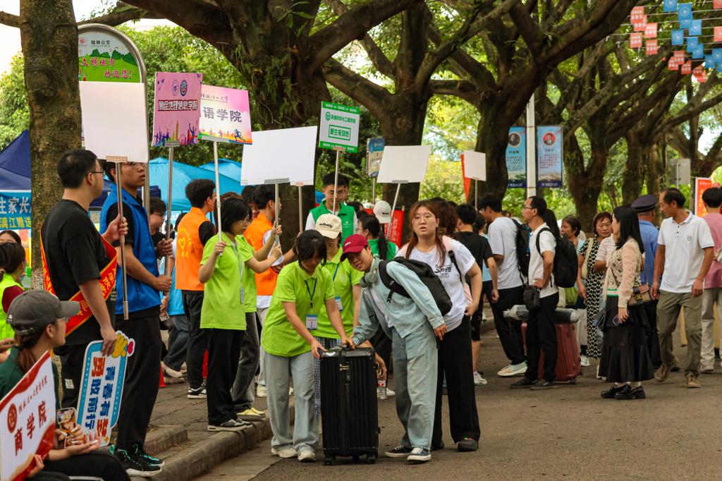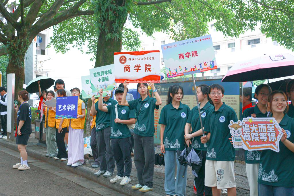 各职能部门和各学院多方联动、精心部署,有条不紊地完成场地布置、新生迎接、数据采集等工作。学校全体教职员工和志愿者们以最饱满的热情、最昂扬的姿态,力争为新生及家长们提供了安全、高效、便捷、温暖的迎新服务。校园各处的迎新板、迎新条幅、迎新打卡板,校道树旁飘荡的彩旗与传来的广播之声都在向新生致以诚挚欢迎。学校布置的“绿色通道”,为新生提供“亲情式”的入学服务,让经济困难的新生能够拎包入住、无忧入学。