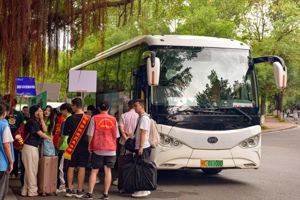 迎着清晨第一缕阳光,早6时,辅导员们和学生志愿者们就已从学校出发,前往桂林站、桂林北站等各个接待站点,热情等候新生到来。辅导员、志愿者引导新生及家长们有序乘车,将其安全送到校内。从清晨到傍晚,一趟趟往返、一车车行李,辅导员和志愿者用心用情为新生踏上桂工的第一站保驾护航。