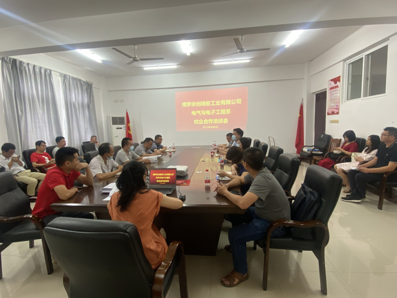 6月8日,博罗承创精密工业有限公司一行3人到我系开展校企合作洽谈会,系主任周红锴、党总支书记甘锦琛、系副主任李高宇及全体教师在4208会议室进行接待并交流洽谈。