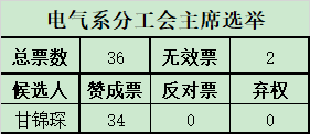 2019年9月5日电气系分工会委员改(补)选举结果如下: