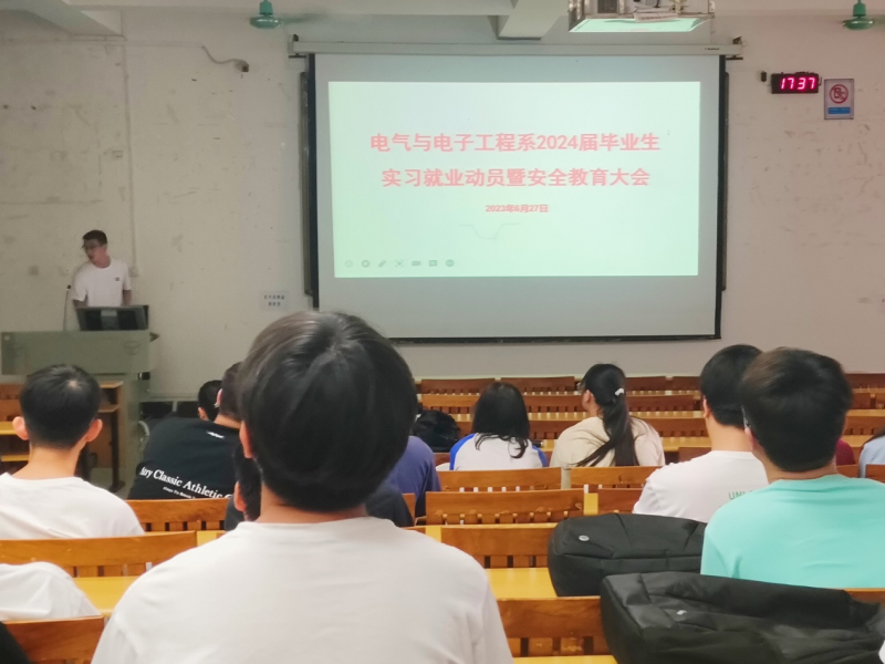 为了帮助即将毕业的24届学生顺利步入职业生涯,激励和引导他们开启职业发展的新篇章。我系于6月27日举办了24届毕业生实习就业动员暨安全教育大会。系主任周红锴、副主任李高宇受邀出席本次大会,全体21级专科学生参加。本次大会由系辅导员王斌主持。