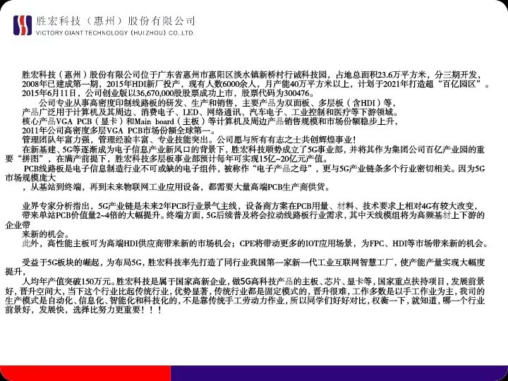 胜宏科技集团招聘专业及岗位安排 1.需求专业:计算机,数控、机电一体化、自动化、机器人、物联网,行政,文秘,软件开发,物流,财务,国际贸易,电子类等专业优先 2.岗位安排:(大专生入职即定义为技术员) ①设备操作技术员 ②品质检验技术员 ③设备维护技术员 ④工艺制作技术员 ⑤行政,财务,文职等 3.待遇:5000-7000元/月 公司详情如下: