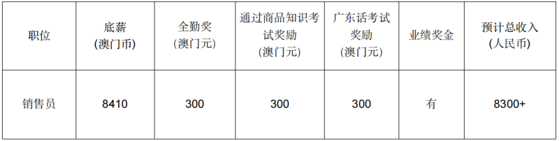 一.职位:(澳门币1.0≈人民币0.86)