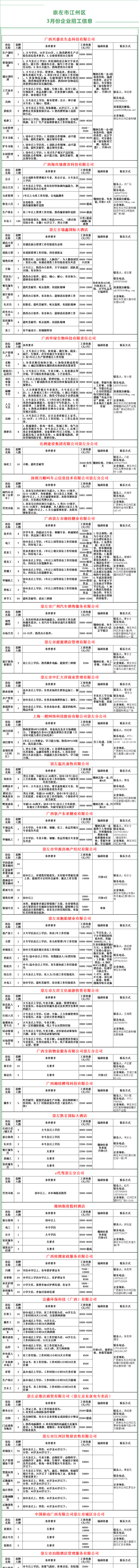 【招聘信息】(转)崇左市江州区3月份企业招工信息