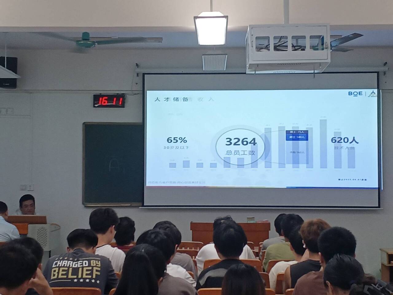 11月12日星期二下午16:10,晶澳(扬州)太阳能科技有限公司和京东方华灿光电有限公司专场招聘宣讲会在我院3301教室准时开展。