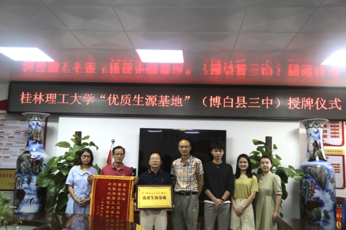 为表彰先进,树立典型,加强与生源地联系,提高生源质量,根据招就办与学工部工作安排,6月19日,我系主任周红锴、辅导员张华、韦艳莎老师、太阳集团21382020年度学生优秀人物通信18-本4班学生符梓良一行4人到博白县第三高级中学举行太阳集团2138(南宁)“优质生源基地”授牌仪式。