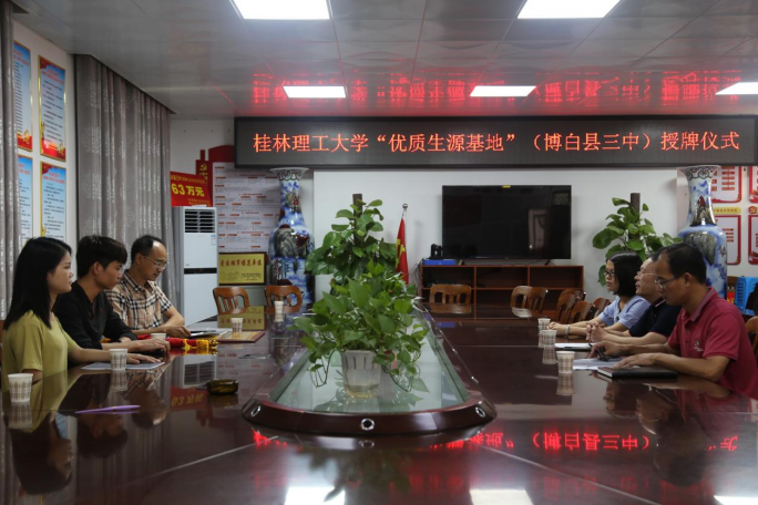 当天,周主任一行来到博白县第三高级中学,与该校领导及教师代表进行座谈交流。座谈会上,周主任介绍我校招生、教学、就业等方面情况,汇报博白三中自2015年以来为我校输送的学生数量及学生发展情况,对博白三中为我校培养输送大批量优秀学生表示诚挚感谢,表示希望加强双方在招生方面的交流与联系,欢迎也希望博白三中更多优秀学子到我校就读。
