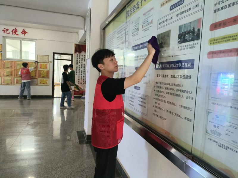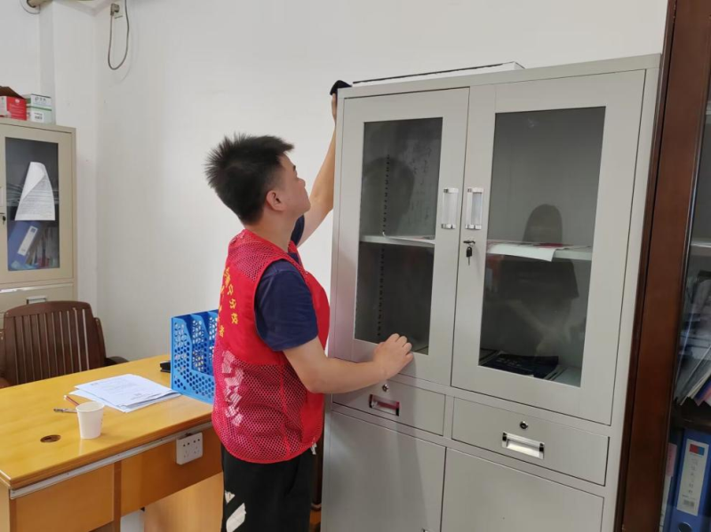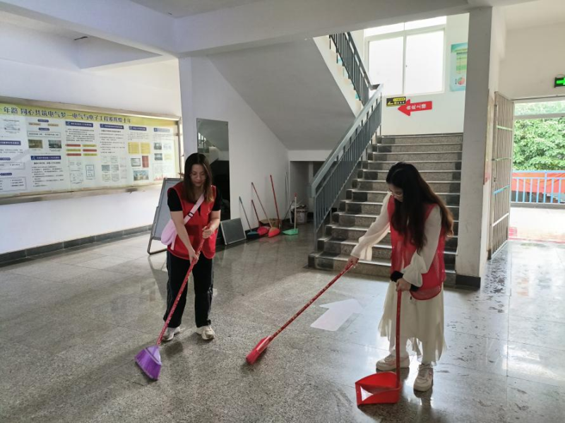 党员同志们在各组分配好的区域内认真负责、互相配合,以净化、美化、亮化的“三美”标准开展清理工作;此外,在清洁工作期间,同志们还仔细地对教学区内的安全隐患进行排查,并及时做出上报。