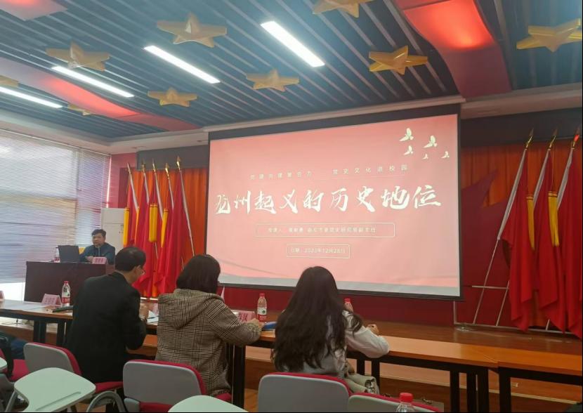 随后,全体党员来到党员教育活动中心开展“龙州起义的历史地位”党课学习,本次党课由崇左市委党史研究室副主任黄朝勇同志主讲。党课的内容围绕“龙州起义创建的左江革命根据地,是党在土地革命战争时期领导创建的一块重要的革命根据地”、“龙州起义开展的反帝斗争,对中国革命产生了深远的影响”、“龙州起义产生了较大的国际影响,极大地推动了越南革命的发展”和“龙州起义铸就的革命斗争精神,是推动民族伟大复兴精神家园的重要组成部分”四个方面对龙州起义的历史地位进行了学习研讨,全面阐述了龙州起义在中国革命史上占有重要的地位,为中国共产党领导的新民主主义革命斗争写下了光辉的一页。