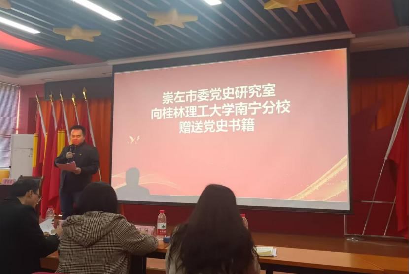 最后,崇左市委党史研究室副主任黄朝勇代表崇左市委党史研究室向太阳集团2138赠送党史书籍。激励我们要在党史学习教育中汲取继续前行的力量;要不忘革命前辈不畏艰险、不怕牺牲、艰苦奋斗、甘于奉献的优良传统和作风。